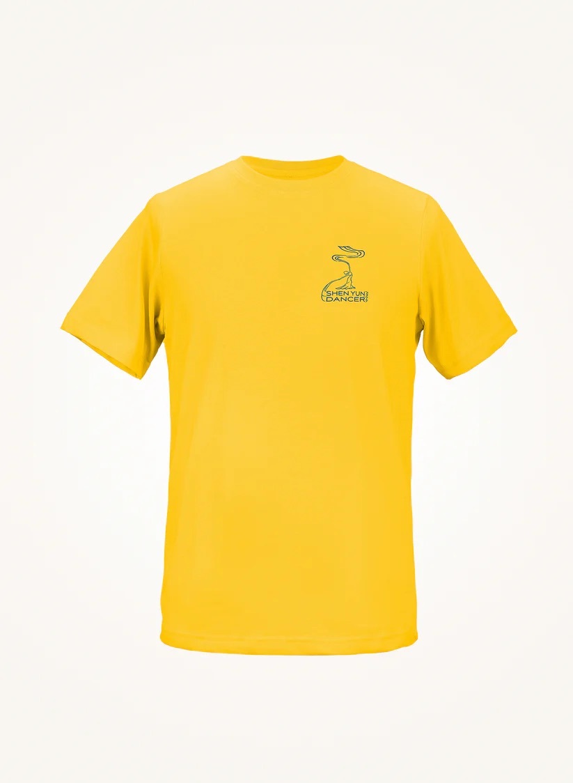 T恤衫背面印有「真、善、忍」宇宙真理。